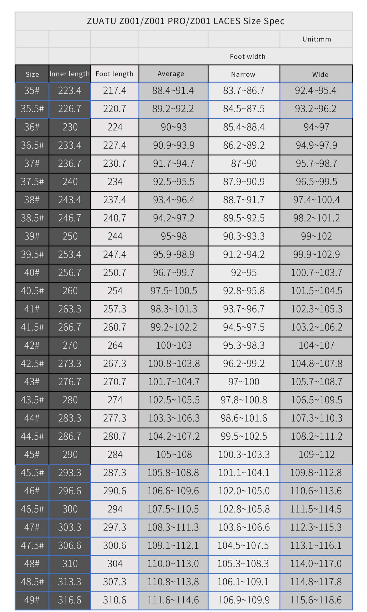 35, 35.5, 36, 36.5, 37, 37.5, 38, 38.5, 39, 39.5, 40, 40.5, 41, 41.5, 42, 42.5, 43, 43.5, 44, 44.5, 45, 45.5, 46, 46.5, 47, 47.5, 48, 48.5, 49
